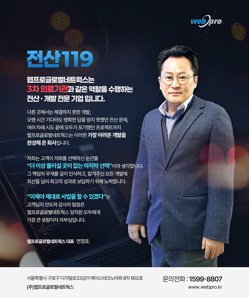 웹프로글로벌네트웍스는 3차의료기관과 같은 역할을 수행하는 전산개발전문기업 입니다.