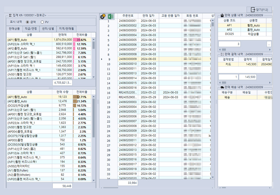 - C.より詳細に照会するには、販売内訳で照会したい内訳をダブルクリックして、下段で詳細情報を確認することができます。