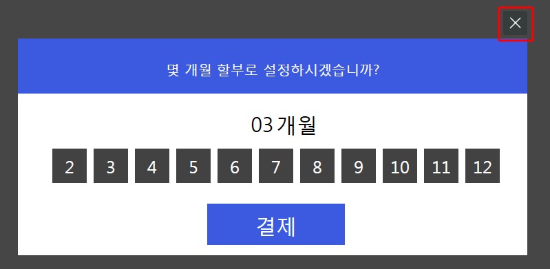 在利用优惠与否触摸[是]时将显示询问优惠月数的显示窗。触摸相应的优惠月数后触摸结算按钮。